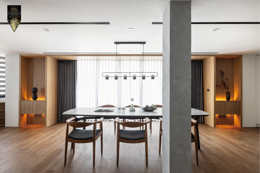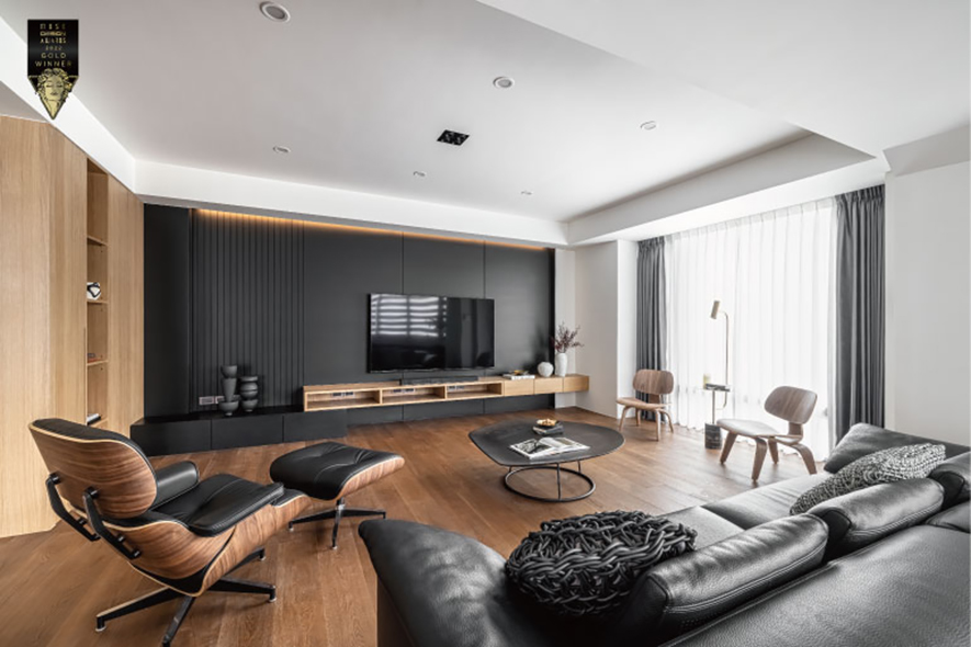 基於「創造空間對話,讓使用者融入其中」心境,喬治黑羊設計 李家齊 設計師 於作品《透・景》中,以穩重的黑色與溫潤的木質共築一室,活化家宅的自在樣貌,於2022賽事奪得「金獎」榮耀,將品牌推向國際舞台!