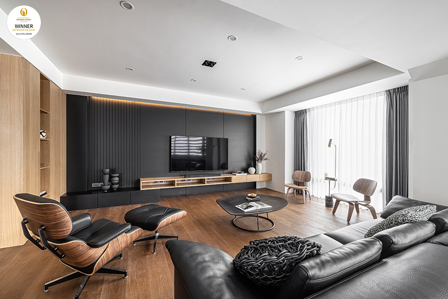 喬治黑羊設計 李家齊 設計師 於家宅作品《透・景》中,透過深沉穩重的黑與溫潤質樸的木質,形塑細膩質感,並回應業主對開放場域的期盼,摒除室內隔間,巧劃寬敞舒適的大氣格局,獲得2022 OPAL倫敦傑出地產大獎「Winner」獎項,續寫品牌榮耀!